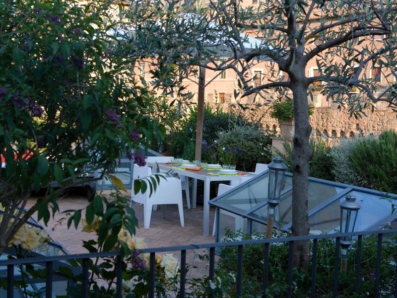 On the first floor there is a beautiful lounge with 5 meters high ceilings and view over the "Passetto", which is the route connecting the Vatican to Castel Sant'Angelo and realized in the fifteenth century and used in former days by the Popes as a refuge in case of need. The property also has 2 bedrooms, each one with en-suite bathroom. It includes a wonderful terrace of about 110 sqm equipped with kitchen and views over the Passetto and St. Peter's Dome.