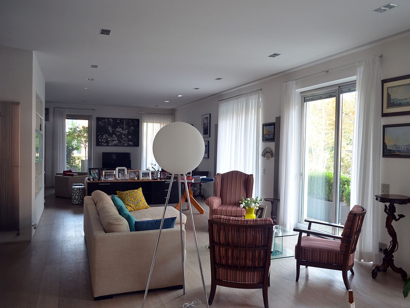 The property, designed with great care, in Anglo-Saxon style and minimalist, is characterized by a large representation of around 100 sqm., very bright  thanks to large windows and sliding steel double glass, to which is added a dining area with adjoining kitchen hi- tech (stainless fridge side-by-side, double oven / warmer, dishwasher, extractor hood and automatic control).