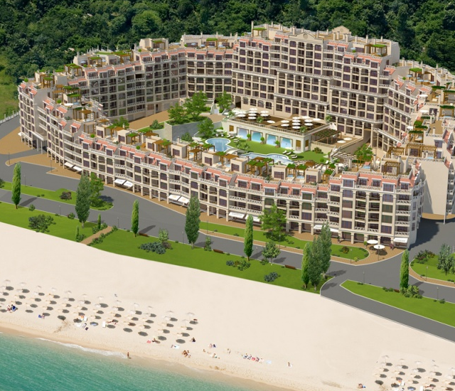 Описание и интерьер: Объект спроектирован как элитный комплекс закрытого типа со всеми удобствами. Комплекс не уступает в качестве и дизайне мировым образцам. Зданиe воздвигнутo согласно высшим европейским стандартам, с высококачественными материалами и инновационными технологиями. Комплекс был удостоен наградой за „Пространственный дизайн“. Возможность как сезонного, так и круглогодичного проживания. Все апартаменты с прекрасным видом на море. Некоторые апартаменты имеют джакузи.
