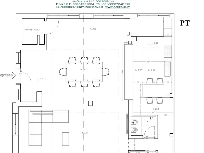 Вилла расположенна на четырех уровнях, размещена на  290 квадратных метрах и  имеет два входа: основной вход и вход для обслуживания.
