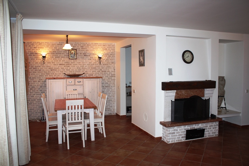The villa comprises four bedrooms and three bathrooms, living room with fireplace, kitchen and dining area.