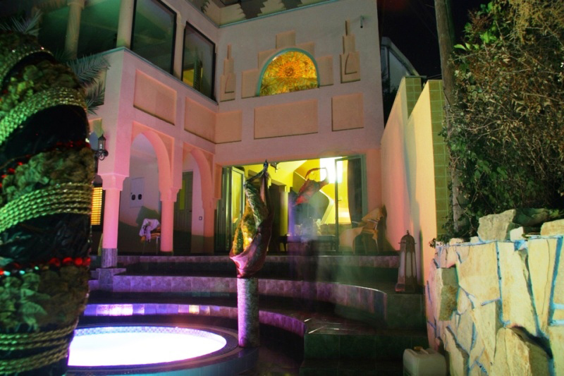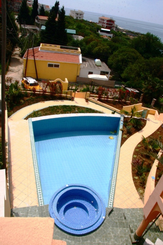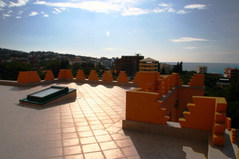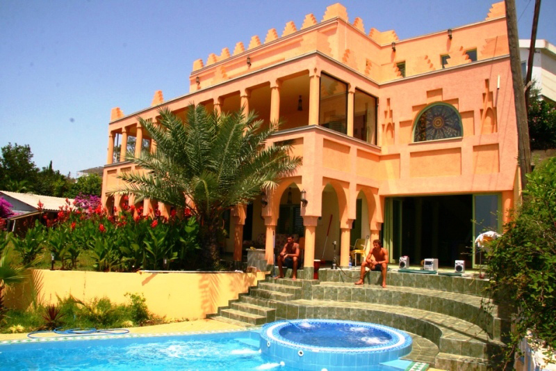 Beautiful three-storey villa 100 meters from the sea. The villa is located in a picturesque place of the Adriatic in the village of Dobra Voda. The building is in the Moroccan style and is surrounded a lovely garden. Inside the the garden there is swimming pool with blue-green light.