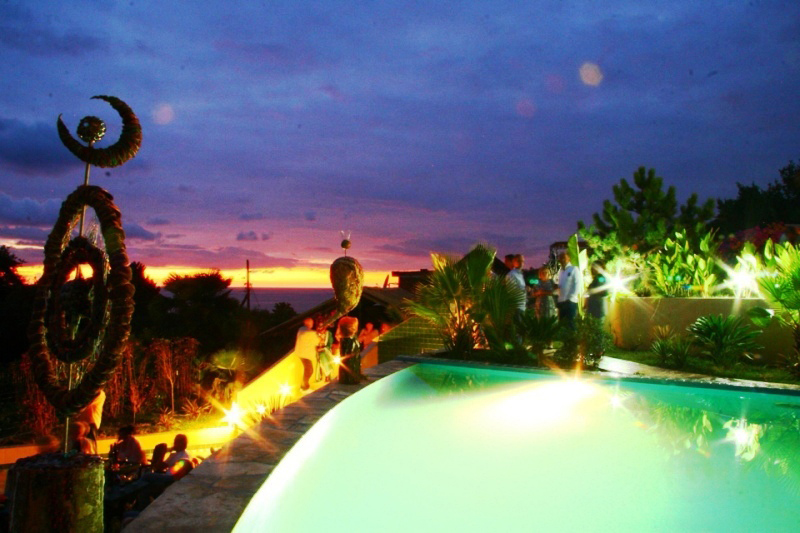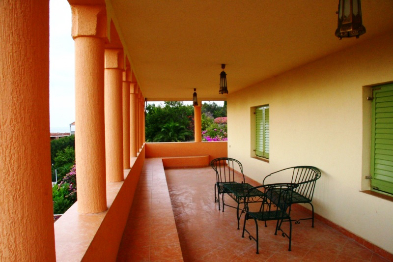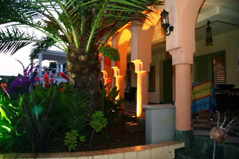 There are fruit trees, rosemary, palm trees, pine trees and beautiful flowering bougainvillea. There are decorative garden with herbs and vegetables.