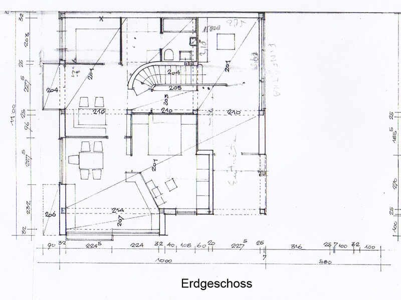 Sie besteht aus 3 Etagen, jeweils 110 m2 und wurde für zwei Familien entwickelt.