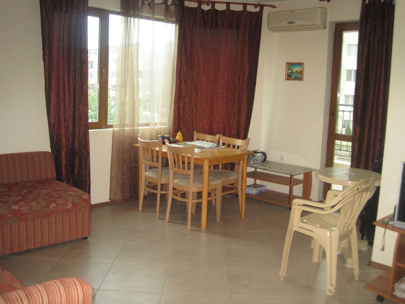 Продаем двухкомнатную квартиру, площадью – 64.68 кв.м, на 2-ом этаже с видом на бассейн в готовом комплексе с актом 16 на Солнечном Берегу. Жилье состоит из зала с кухней, спальни, сан.узла и балкона. Мебель и техника входят в цену. С видом на бассейн.
