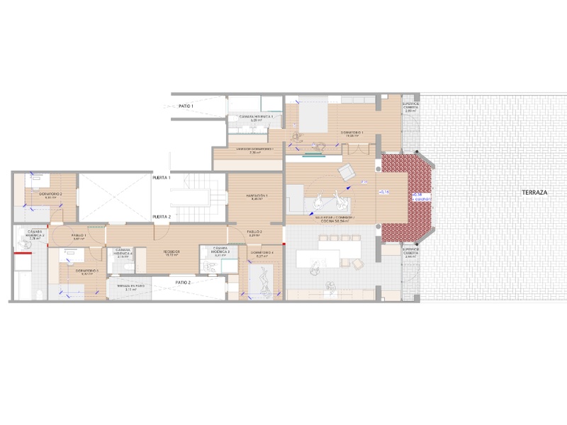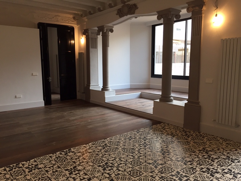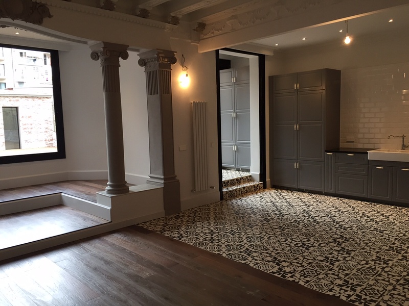 Эксклюзивная квартира в сердце Золотого Квадрата недалеко от Саграда Фамилия в классическом здании с лифтом. Общая площадь 350 m² из которых 135 m² занимает частная терраса. Располагает 5-ю комнатами (2 свит) и 4 санузлами с уникальной отделкой. Капитальный ремонт закончен три месяца назад. Все отделочные работы на высоком уровне. Кондиционирование посредством каналов и установкой DAIKIN, отопление осуществляется независимыми радиаторами особого дизайна, сантехника VILLEROY & BOCH, освещение LED, полы покрыты первоклассным паркетом из натурального дерева. Имеет впечатляющую собственную террасу с доступом к жилому помещению типа студии. Дом сохраняет первоначальные высокие потолки. Отделка была спроектирована таким образом, чтобы смешать классику с современностью.