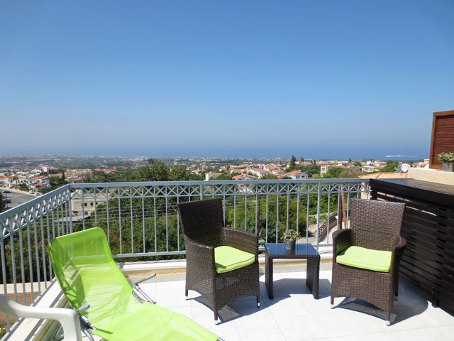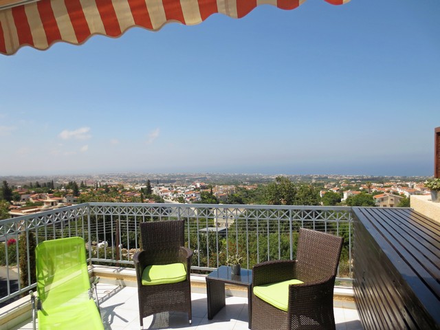 Flat for sale in Paphos - a town in the southwestern part of the island of Cyprus.The apartment is located on a hill near the village of Tala hill giving a beautiful view of the sea. Large communal swimming pool surrounded by a paved seating area. All the necessary amenities are within 4 minutes' walk. Features: This spacious top floor apartment has an excellent location, the project offers a panoramic view of the sea. The apartment has a fully equipped large kitchen. The corridor leads to 3 bedrooms with fitted wardrobes, high ceilings, overlooking the sea and mountains. Features: Bedrooms: 3 Bathrooms: 2 Community Pool. The flat: 113.24 square meters. Covered parking. Year built: 2005. Details: 4 km of coastline, 5 km to 18 hole golf course, 8 km to the town of Paphos, 25 kilometers from Paphos International Airport.
