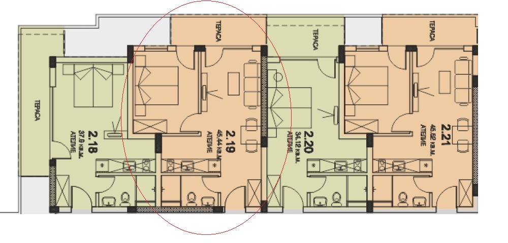Двухкомнатная квартира 2.19 разположена на 2 этаже сдания, площадь 52,43 кв.м., распологает с одной спальне, гастиная с кухоном боксе и душевая комната с тоалетом. Квартира в степень окончание под ключ.
