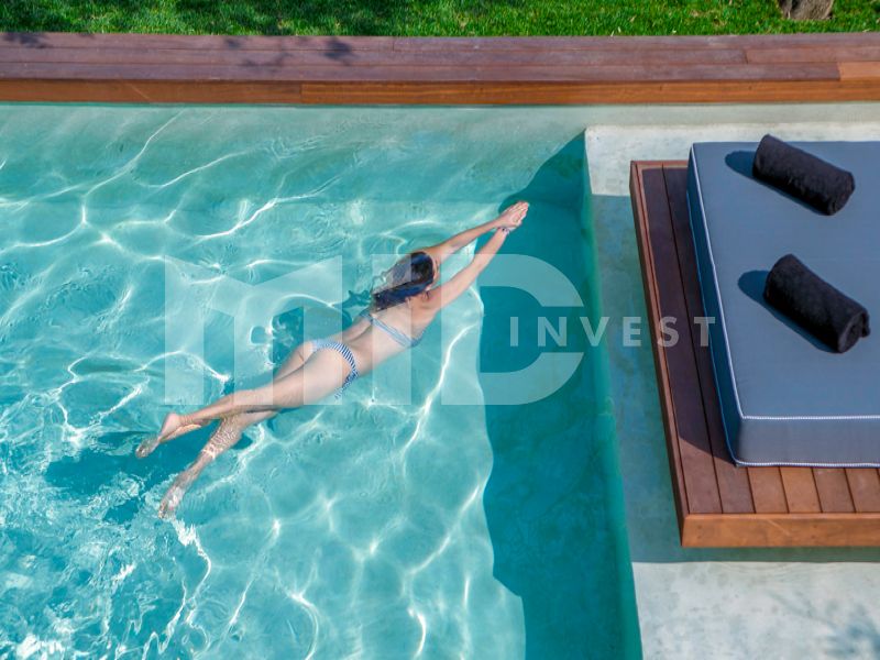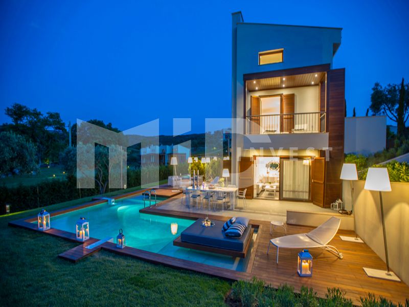 Luxurious appartment 60 sq. meters in a complex of 16 villas. This appartment is a stylish and contemporary beachfront escape which consists of one floor. It is designed in one level, on the ground floor, featuring living and open plan kitchen, one bedroom with king size bed and one with twin beds , one bathroom with shower. Private pool with a double, built in water, sun bed and furnished patio of almost 25 sq. m. with views to the gardens and the sea are also provided. Free welcome drink and bottle of wine and fruit upon arrival are only some of the services which are provided. The prices below are per week for the Low Season. For any further information, please contact us by phone or email of the company. http://www.midinvest.gr/en/chalkidiki-athos-apartment-2324/