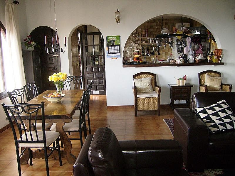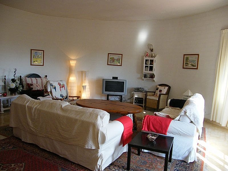 Верхний этаж - Вы входите в прихожую: с левой стороны находится красивая большая гостиная с очень высокими потолками (4 -5 м), прямо перед вами располагается новая кухня (реформированная в 2009г.), справа от вас - длинный корридор и в нем находятся три спальни хорошего размера, две ванные комнаты. Гостинная комната легко вмещает удобный мягкий уголок, телевизор / DVD и большой обеденный стол. Попивая утренний кофе в гостиной, Вы сможете насладиться изумительным видом на море, не вставая с дивана.В гостиной также находится большой камин с очень красивой мозаикой покрывающей дымоход.