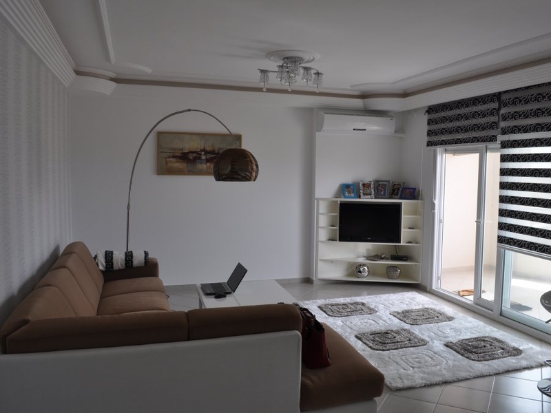 This apartment has a nice location only 500 metres from the beach. The apartment on 8th floor with mountain views is 120 m2 and has 2 bedrooms, 2 bathrooms, living room with open kitchen and 2 balconies. White goods and all furniture including to price. Complex Facilities; Gym Wifi Internet Cark Park Tennis court Minigolf area Poolbar For take more information you can write me or call. +90 543 309 3279 Viber and WhassApp.