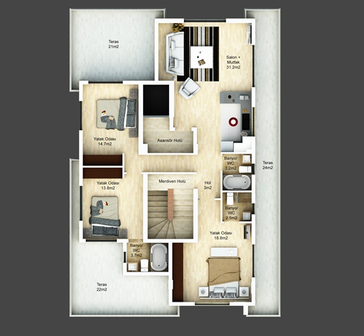 Nurel Group of Companies present new project in the city center of Kyrenia, with one-bedroom, two-bedroom and three-bedroom apartments to satisfy everyone.