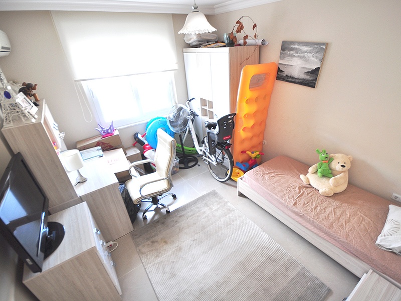В апартаментах площадью 120 м2, 2 спальни, гостиная с кухней американского типа, 2 санузла, 2 балкона. Внутренняя характеристика квартиры: стальная дверь, пластиковые окна с одним стеклопакетом, межкомнатные двери из американских панелей, покрытие пола – керамическая плитка. Квартира продается полностью меблированная, с кондиционерами и бытовой техникой.
