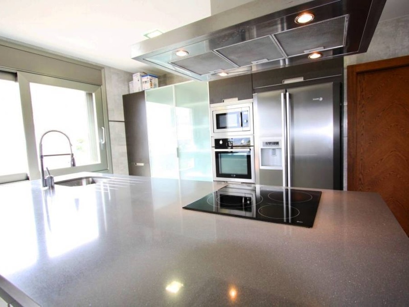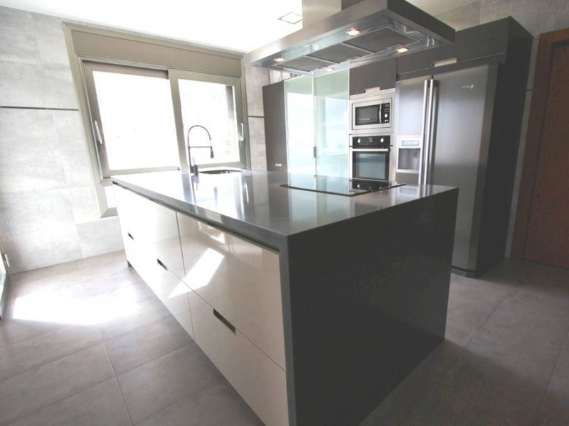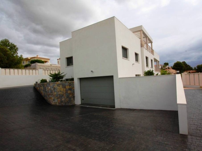 The house in near to the White Port in Calpe, and it consists of 5 spacious bedrooms, one of them in a grand suite and with a large dressing room, 5 bathrooms with tiles of high quality, designed kitchen, large living/dining room with modern fireplace , barbecue area and swimming pool with jacuzzi, garage, outdoor parking, barbecue.