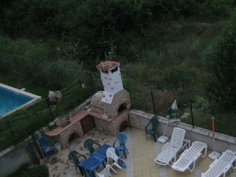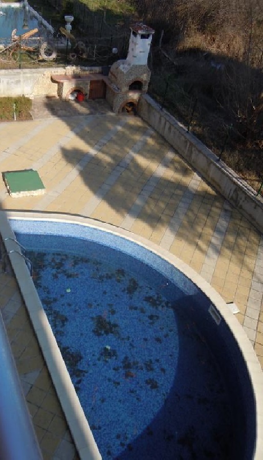 The territory is fenced, on the territory of a swimming pool, deck chairs, umbrellas, barbecue.