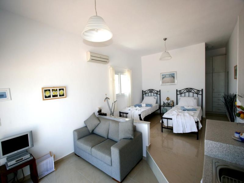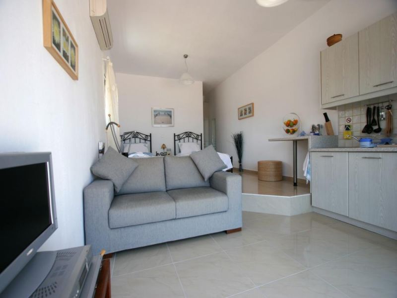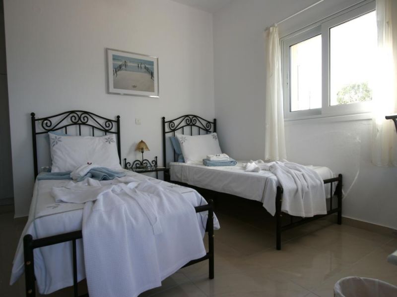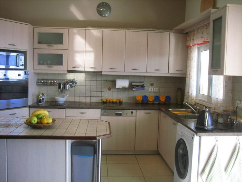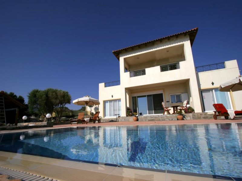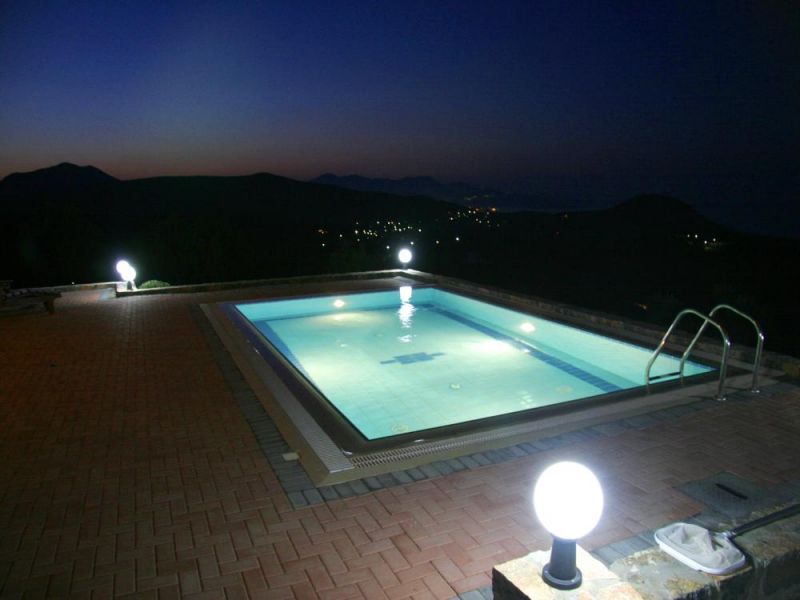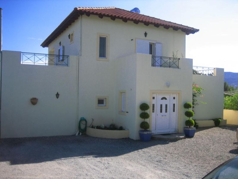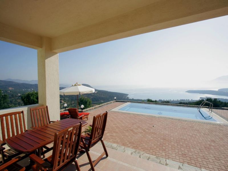 Sale villa with pool and fantastic views of the sea in Agios Nikolaos, the capital of the nome of Lasithi, located on the northern coast of Crete, Greece. Beautiful villa with stunning views of the Mirabello Bay, the sandy beaches of Istron and spectacular mountain ranges Lassithi. Villa a total of 180m2 and stands on private land of 4000 square meters on a hilltop in Vathi area, on the road to Kalo Horio - Istron from Agios Nikolaos. At 2 minutes from some of the best sandy beaches in eastern Crete. 9 km from Agios Nikolaos. Real estate is divided into two parts: the main house and 2 bedroom on either side of the house has 2 Sticky studio apartments with a private entrance. The main house consists of: ground floor - open plan living / dining room with double glass door that opens onto a terrace with sea views and a swimming pool, an open plan fully fitted kitchen and a cloakroom with toilet. Second floor - bedroom with fitted wardrobes, front balcony with sea views and a large terrace side. Bathroom with shower. Two studio apartments are located on the left and right of the main house, they are identical. Each consists of a small kitchen, bedroom / living room with double glass doors that lead onto the terrace with sea views and a swimming pool. Shower room with wash basin and toilet. The house also has, under floor heating, solar panel water heating system. In the outer area of the property has a swimming pool (8 x 4 m) with a poolside terrace, barbecue, covered dining. Beautiful garden with lots of flowers, fruit trees and stone figures. Private entrance and ample parking for several cars.
