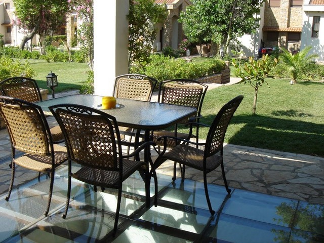 снять в аренду уютный трех-уровневый мезонет в охраняемом и огражденном комплексе из 12 домов, в небольшой тихой бухте, на побережье, первая линия от моря, в знаменитых лесах второго мыса - Ситония, полуострова Халкидики. Комплекс расположен в 110 км. от международного аэропорта "Македония" г.Салоники. И в 6-ти км. от ближайшего курортного городка Неас Мармарас. Где вы можете найти все-возможные магазины, супер-маркеты, кафетерии, таверны, рестораны, рынок, мясные и рыбные лавки со свежей местной продукцией. СПА центр, детский мини-луна-парк.