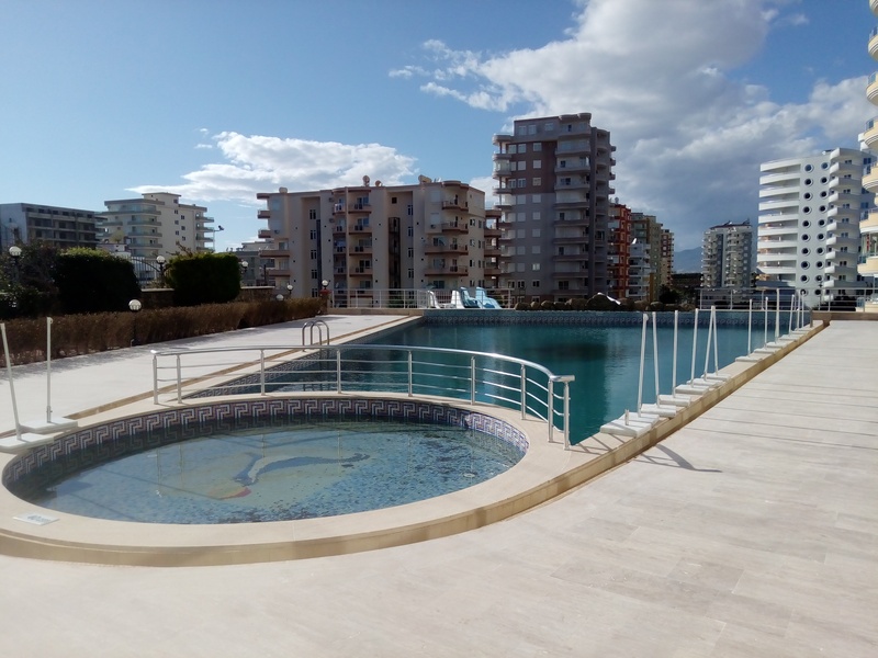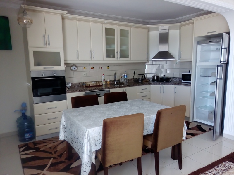 Алания/Махмутлар 2+1 89000уе 120м2 6эт\12эт здания. До моря 650 м До центра 500. 2 спальни,гостинная с кухней, 2 ванные комнаты, гардеробная, два больших балкона. Полная меблировка. В комплексе с зимним крытым басеином и летним на свежем воздухе. Светлая, уютная, с изумительным видом на море и горы.