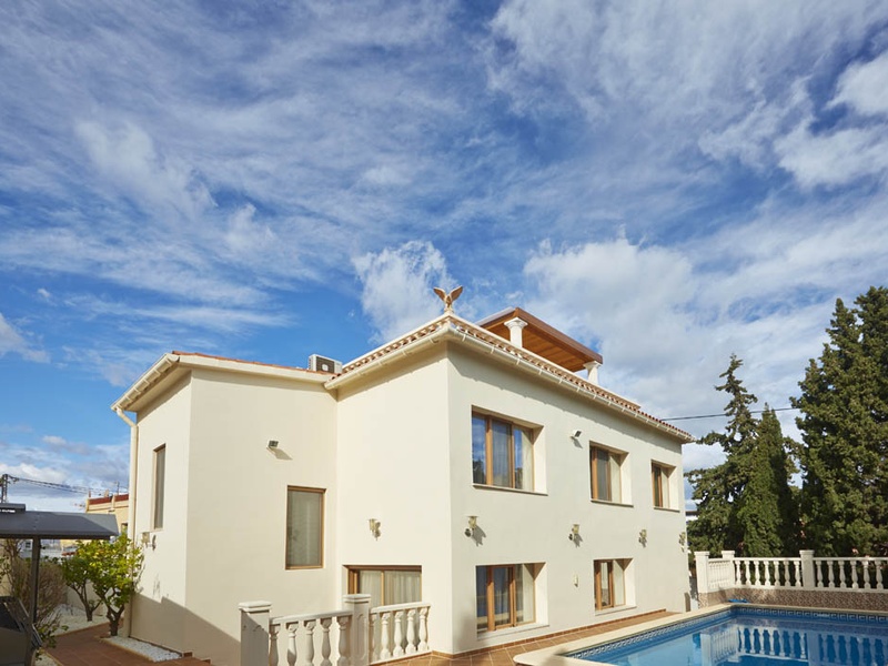 Unique villa in colonial style, built in 2006, is located in the heart of Albir and 400 meters from the beach. On the ground floor there is a spacious living room; fully equipped kitchen, including a refrigerator for storing wine; office, 1 bedroom with adjoining bathroom, guest toilet. On the second floor there are 2 bedrooms and 2 bathrooms, children's room. The third is a terrace with a beautiful view of the sea and the mountain Sierra Helada.