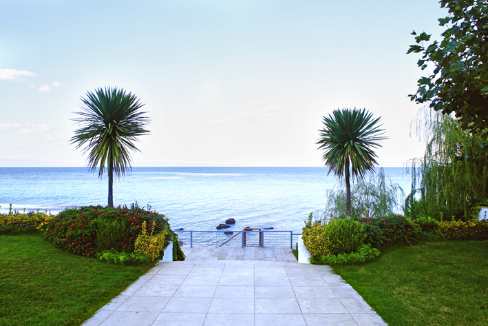 Three floored furnished villa in Chalkidiki is 80 km from the airport "Macedonia" and is 90 km from Thessaloniki city.It is a very calm place surrounded by pine trees and greenery. It is 10 m from the sea and has a big yard with alcoves and chaise-lounges. Prices: May:800 June:1300 July:1.600 August:1.600 September:1300 October:800