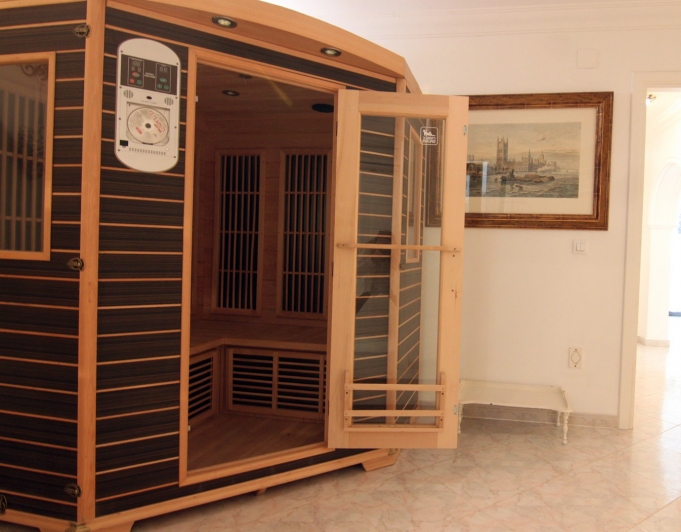 The villa is situated on a plot, stylized castle park, in a quiet green area. Hot water for the pool and hot tub (on the terrace) are regulated by computer.