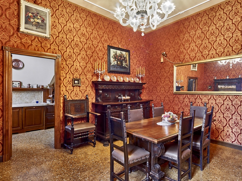 The apartment is composed of : an entrance; a wide living room with a beautiful ‘Bifora’ (mullioned window) overlooking a quiet canal; a bright dining room; a rustic and elegant kitchen; one single room; two large double rooms both with en-suite bathroom (one decorated in marble and one with a nice “trompe l’oeil” decoration). At the ground floor there is a nice room configured to create a bathroom.Situated in a very central area, ten minutes’ walk from Rialto and Santa Maria Formosa. The apartment is conveniently situated for easy access to the Rialto and San Marco vaporetto (waterbus) stops. The area is well served by shops and supermarkets. Moreover, the Rialto fish, fruit and vegetable market is within a few minutes’ walk. The area also offer a good selection of very good restaurants and traditional venetian wine bars (Bacaro).