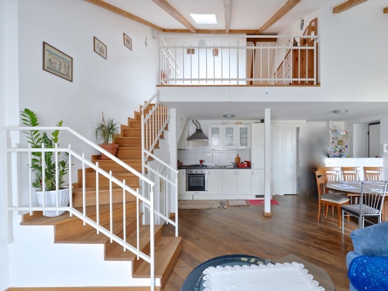 www.abrupt.ru Продается мансардный мезонет с балконом, находящийся на 6-м и 7-м этажах жилого дома с лифтом, в непосредственном соседстве с парками, создающими т. н. Энгелув зеленый пояс (Engelův zelený pás), который соединяет эту привлекательную часть пражского Бубенече (Bubeneč) с близлежащими Стромовкой (Stromovka) и Ореховкой (Ořechovkа), всего в 5 минутах ходьбы от станции метро на площади Победы (Vítězné náměstí).