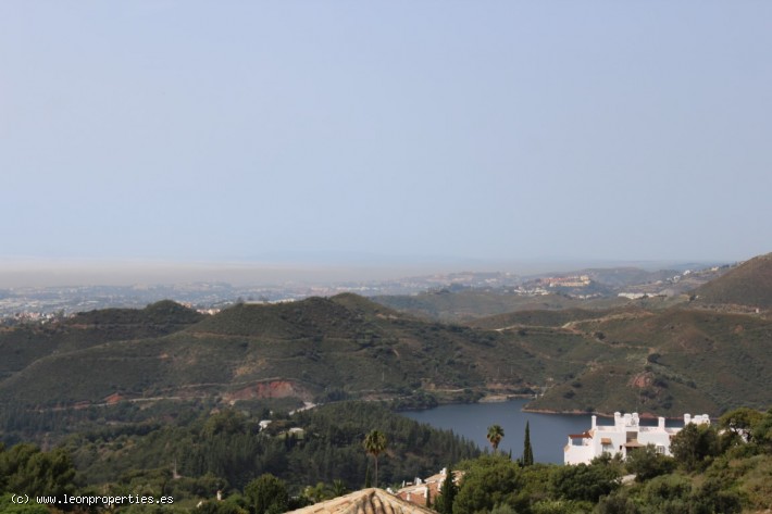 Lovely villa in a secure, gated community just 10 minutes' drive from the Puente Romano Hotel. The villa boasts superb panoramic views of the Mediterranean sea, Gibraltar and Africa, as well as of the Istan lake from almost every room in the house. Accomodation comprises, on the main level: entrance terrace with seating area and fantastic views; bright living/dining room with fireplace; modern and practical kitchen, and access to a lovely covered terrace and the garden; guest toilet. On the top level: large, bright master bedroom with en-suite bathroom and dressing room, tall ceilings and a large private terrace from where the views can be enjoyed at their best. On the lower level: two further bedrooms sharing a bathroom; the lower level bedrooms open up to a large covered terrace and garden with private pool.