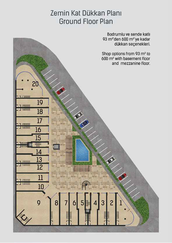 Проект включает в себя не только просторные элитные апартаменты, но и торговый центр с большим количеством площадей для аренды под магазины, офисные помещения, кафе, детская игровая площадка и уютная благоустроенная территория. Рядом с новым комлексом находится один из лучших ресторанов Фамагусты «Ниязи», в нескольких минутах ходьбы расположены гипермаркет «Лемар», кинотеатры, боулинг центры, кафе, рестораны, магазины. А всего в 5 минутах езды от комплекса располагается средневековый город со множеством исторических достопримечательностей, а также 5 звездочный отель «Аркын Палм Бич» и прекрасный пляж.