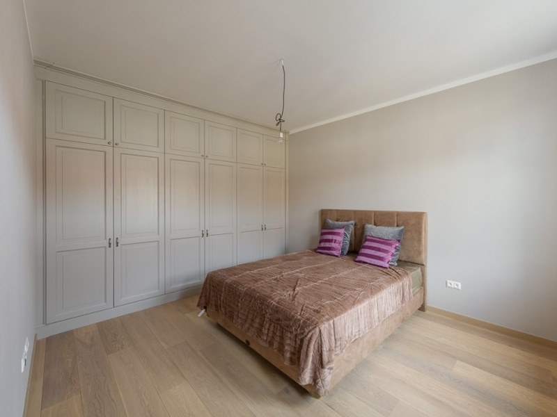 Планировка квартиры состоит из гостиной с новой, полностью оборудованной кухней, столовой зоной и тремя большими окнами, далее 3-х спален, ванной комнаты с ванной, душем и туалетом, отдельного туалета, гардеробой и прихожей. Квартира светлая, «воздушная» и имеет большое количество хорошо спланированных мест для хранения вещей.