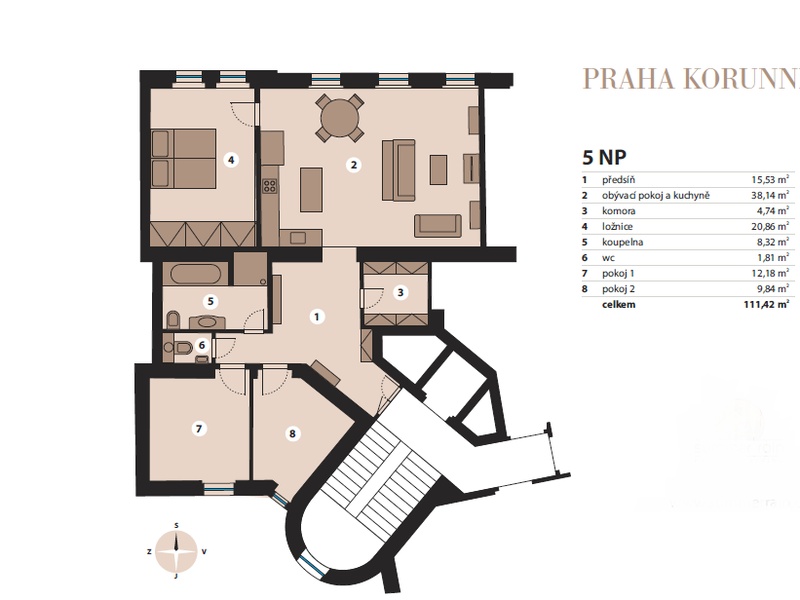 www.abrupt.ru Продается полностью отремонтированная с вниманием к деталям, недавно и элегантно меблированная квартира, расположенная на 5-м этаже жилого дома после полной реконструкции, который находится в востребованном районе Праги 10 – Винограды (Prahy 10 – Vinohrady), в 5 минутах ходьбы от станции метро на площади Йиржиго з Подебрад, в пешей досягаемости парка Риегровы сады.