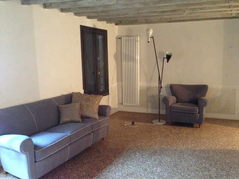 For sale fully renovated apartment located on the mezzanine floor of an old Gothic palazzo of beginning of the XV century. Total area – 91,66 sq. m. It’s composed from – independent entrance, spacious living room, kitchen, 2 bedrooms, 2 bathrooms. The apartment was completely renovated both, inside and outside. Was completely replaced the wiring system, installed a new heating system, air conditioning, water system, entry doors, new double glazed windows. Carefully restored original ceiling frescoes and stucco, as well as vintage original Venetian floor.