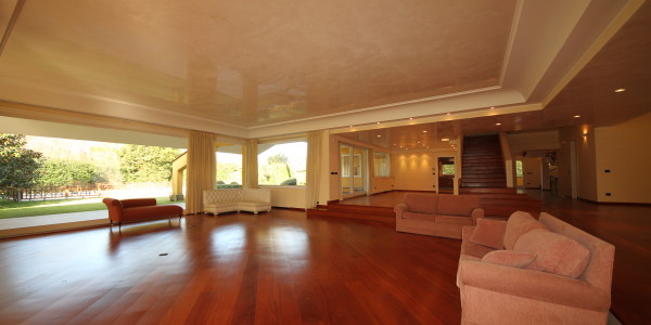 For sale Luxury villa with pool in Oldzhiata district, in the province of Rome, Lazio region, Italy. Large and charming villa with swimming pool. Luxury villa huge size 1,100 square meters on three levels with 12 rooms with 7 bedrooms and 9 bathrooms Komat in an exclusive area of Olgiata, with H24 security services and includes the famous golf club, country club and riding club. The first floor consists of an entrance hall, a large living room with dining area and large windows that overlook the porch and pool, a guest bathroom with dressing room, billiard room, a large kitchen and a corner fireplace. Large hallway gives access to the second level: the right wing: the house bedroom with fireplace and balcony, corridor with large closets, a bathroom with double whirlpool and shower, the second attic with a small terrace overlooking the pool. The left wing consists of a bedroom with bathroom and shower, terrace, bathroom, hallway with access to the rear balcony, large bathroom with bath, shower and separate toilet, large walk-in closet, two additional bedrooms. A staircase leads to the attic: hallway, large laundry room, hobby room, cinema room, bathroom, equipped gym and an independent apartment with a bedroom, kitchen and bathroom. Huge garage for 10 cars. The villa is surrounded by a beautiful garden of 3000 square meters, surrounded by verandas and pergolas, barbecue.