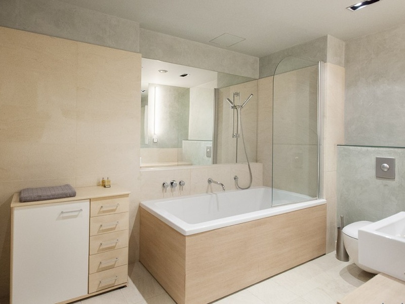 Оснащение квартиры включает в себя деревянные полы, в ванных комнатах настенную плитку из известняка, деревянные французские окна, полностью оборудованный кухонный гарнитур. Покупная цена включает в себя 2 парковочных места в гараже и подвал.