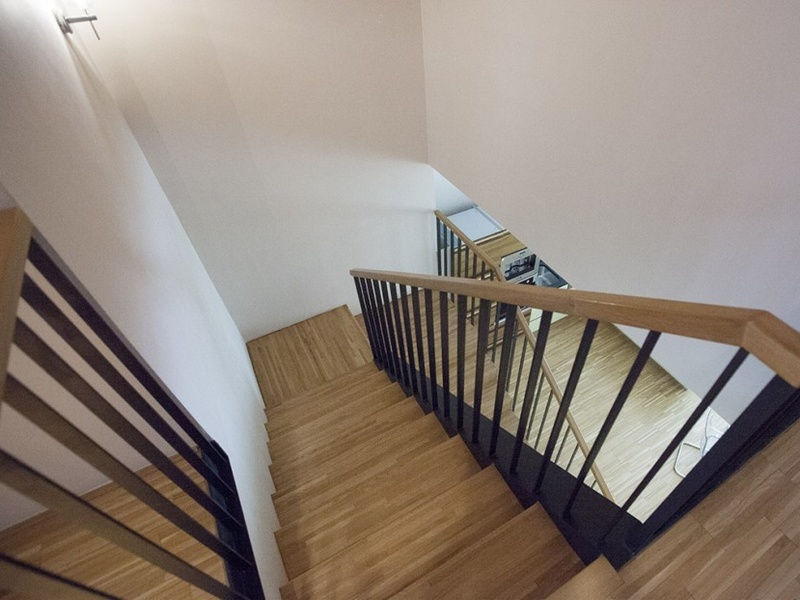 На нижнем уровне квартиры размещены гостиная с кухней-нишей и выходом в сад, гардеробная, туалет и лестница, ведущая на верхний уровень. На втором уровне находятся две спальни с выходом на балкон, 2 ванные комнаты (одна из примыкающая) и прачечная.