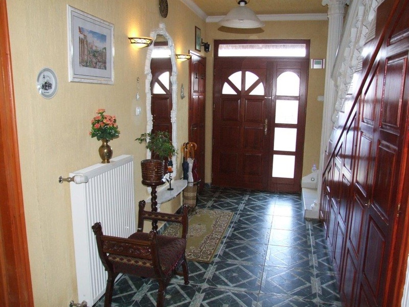 На втором этаже расположена огромая ванная с двухместным гранитным бассейном, отдельный туалет-бидэ, рукомойка, 3 большие комнаты и одна стиральная, которая по потребности можно переоборудовать под кухню. К самой большой комнате относится большая терасса и гардероб. Эту комнату по потребности можно передалеть на две нормальные комнаты. Полный чердак – это одно проходимое пространство. К главному зданию с проходом присоединяется технически полностью отделенное здание, всего 111 кв.м., с подвалом. Это здание имеет отдельный вход со стороны улицы. В настоящее время там функционирует поликлиника, но можно использовать в качестве магазина или жилового пространства. Чердак бетонированный, можно застроить. В подвале имеются 2 помещения: здесь имеются газовые котлы, мастерская и склад. Топление осуществляется газово-циркуляционными котлами. На первом этаже имеется подготовленное место для камина с водяным пространством. Имеется кондиционер. Окна и двери со ставнями и москитным сетками. Комплекс имеет сигнализацию и систему видеонаблюдения, видео телефон. В саду автоматическая система полива. Подача воды осуществляется альтернативно из пробуренной скважины или сети. Главное здание, гараж и забор были построены в 2002 году, побочное здание в 2001 году прошел полный инженерно коммунальный ремонт.