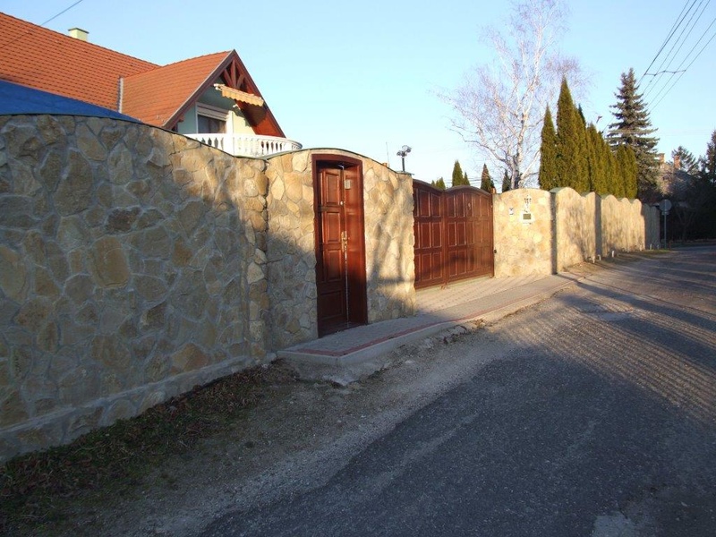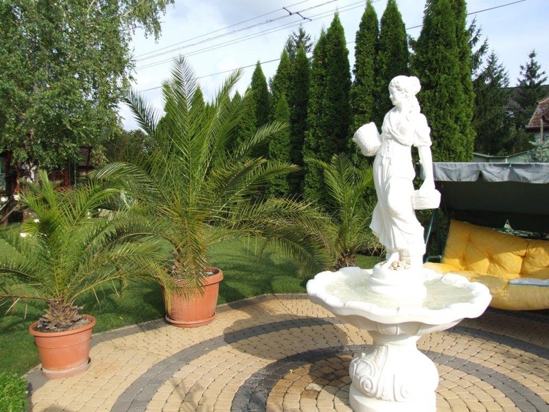 Ухоженный, облагороженный двор ограждён забором, который не позволяет заглядывать. Проходя через автоматические ворота, открывающиеся кодовым замком, заходим во двор с виаколором. Таким образом слегка можем припарковать в двойной гараж. Во дворе Ваш отдых обслуживает бассейн, который можно пополнить теплой водой, душ, фонтан, статуи, барбекю и гуляшовка.