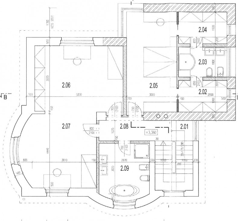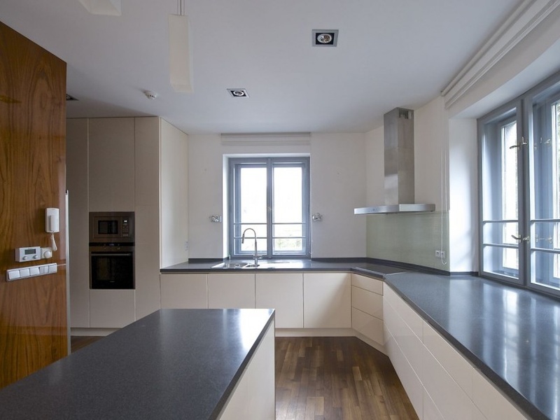 Первый этаж предлагает большую прихожую с деревянными встроенными шкафами, домашний кабинет/игровую комнату, большое кладовое помещение, винотеку, прачечную и ванную комнату с туалетом. На втором этаже находятся главная жилая площадь, большая гостиная с камином, столовая зона с кухней и гостевой туалет. На третьем этаже расположены три спальни, из них главная спальня с 2-мя гардеробными и собственной ванной комнатой, третья ванная комната и отдельный туалет для гостей. На последнем этаже размещены еще две спальни и ванная комната с туалетом.