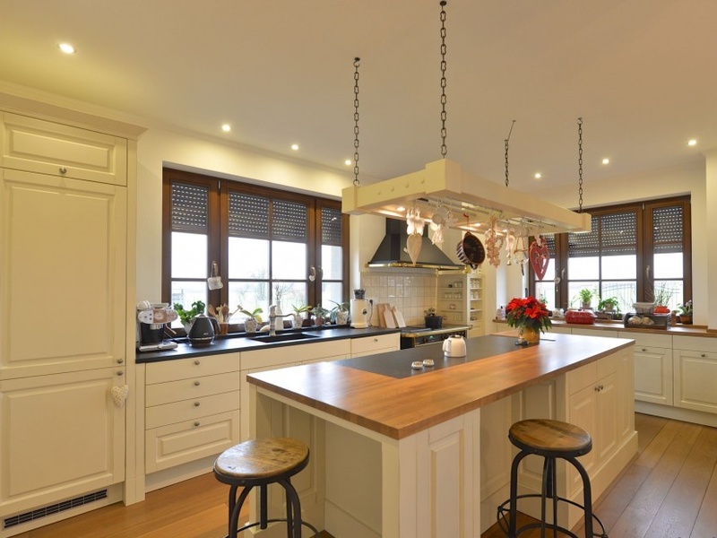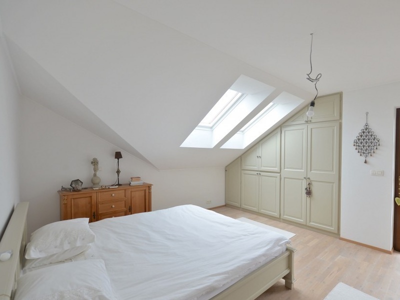 Первый этаж дома состоит из гостиной с камином, кухни и французскими окнами, ведущими в сад, далее домашнего кабинета/спальни, ванной комнаты с ванной, душем, двумя раковинами и туалетом, а также прихожей, через которую можно пройти в гараж на один автомобиль. Верхний этаж состоит из 4-х спален, ванной комнаты с ванной, душем, двойной раковиной и туалетом, а также лестничного холла. Оснащение дома включает в себя массивные деревянные полы, деревянные окна и межкомнатные двери, полностью оборудованный кухонный гарнитур, центральный пылесос Husky, систему безопасности, половое отопление тепловым насосом. В саду размещены подогреваемый бассейн RivieraPool и резервуар для дождевой воды объемом 13 м3.