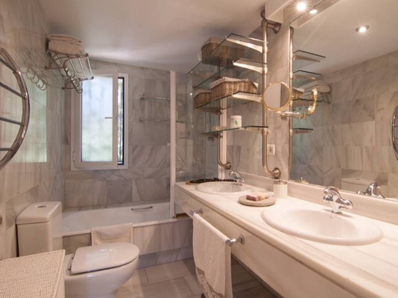 Built across four storeys, the property is accessed from the street via a pathway, which leads through a beautifully kept private front garden. The ground floor level consists of a bright and spacious open-plan living-dining room with a fireplace and access to a gorgeous rear garden terrace. There is also a fully equipped kitchen, with garden access a laundry room and a guest WC. The first floor has to two guest bedrooms, both with fitted wardrobes, plus a guest bathroom. The master bedroom suite has access to its own sun terrace. Upstairs, the second floor features an attic-style guest bedroom with a double bed, its own bathroom and access to a solarium. The basement level meanwhile, consists of a studio/office space with fitted wardrobes and it is connected to a garage. The garage is large enough to house a large vehicle, motorbike and bicycles. There is also a compartment for luggage and a storage space. Another essential feature of this house is a centralized hot and cold air conditioning system. Owners in the urbanization enjoy the use of large and beautifully kept gardens and public areas, along with several community pools and 24h private-security.