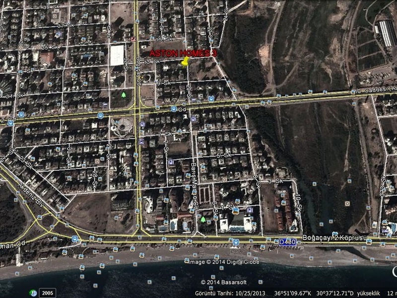 Комплекс построен в Коньяалты, районе Анталии с хорошей инфраструктурой и прекрасными мелко галечными пляжами. Комплекс отлично расположен. Хорошее транспортное сообщение, рядом парки, детские и спортивные площадки, супермаркеты, магазины, кафе, аптеки, банки, парикмахерские. До пляжа Коньяалты около 1500 метров.