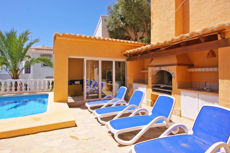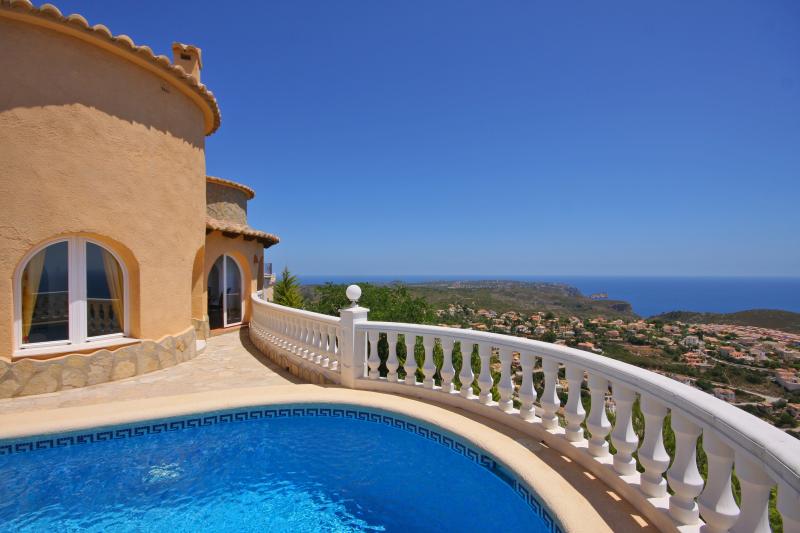 ЦЕНА С КОМИССИЕЙ!!!! Вилла с панорамным видом на море, ок. 2,5 км от пляжа. В очень тихом и солнечном месте. Участок 976 m² Жилая площадь: 111 m² Эта вилла расположена на одном этаже с 2-х уровней, соединенных лестницей и имеет 3 спальни с двуспальными кроватями, одна из них с ванной комнатой, 1 ванная комната с душем, гостиная, столовая, открытая кухня и застекленная терраса, есть бассейн 8 х 4 м с внешним душем, мазутное центральное отопление и кондиционер, гараж на 1 машину, открытая парковка для одного автомобиля, сад, встроенное барбекю. Участок полностью закрыта.