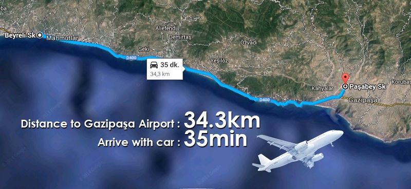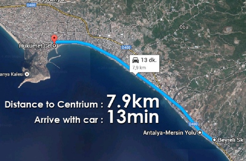 Sur Apartment Complex is only 7.9 km away from the center of Alanya, and one can reach directly without changing vehicles to the hospital, Alanyum Shopping Center, the dock, the city center, the coach station and Alanya Gazipasa International Airport that is just 34.3 km away with public busses which move on the main arterial roads in both southern and northern fronts of the city.
