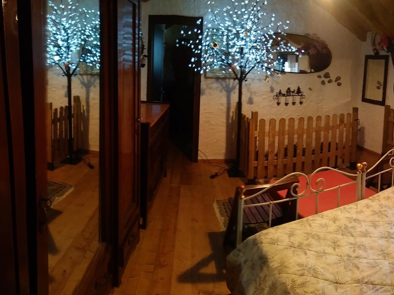 The house is divided in two floors: on the ground floor there are living room, open-plan kitchen and bathroom (equipped with toilet, shower and bidet). To heat the house there's a large fireplace and a kitchener (we call it economic stove - which also brings warmth to the upper level); while to heat the water there is a wood boiler. Extensive use of wood, combined with the presence of solar panels to produce electricity, ensures very low energy costs and a low environmental impact.