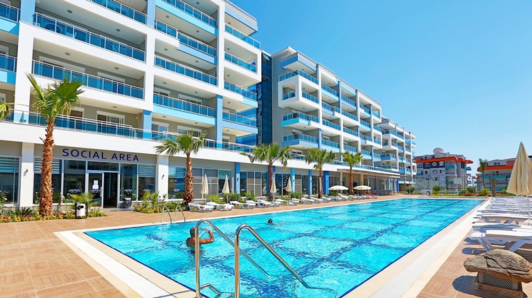 The residential complex is located in Alanya - Kestel. Distance to the sea and private beach of complex just 350 m. There is a coffee shop, wireless Internet access on the beach. Distance to historical center of Alanya city 6 km. Near the complex there are supermarket Migros, BIM, once a week there is Bazaar.