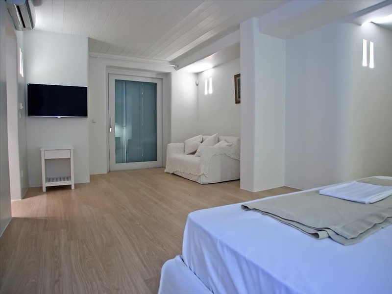 Нижний уровень: 2 двухместных номера с отдельными ванными комнатами & видом на море (душевые, туалетные комнаты, двойной раковиной, двуспальные кровати, A / C, телевизор, вид на море, выход на террасу), двухместный номер (двуспальная кровать, A / C, Телевизор, вид на море, выход на террасу) и отдельной ванной комнатой с душевой кабиной.
