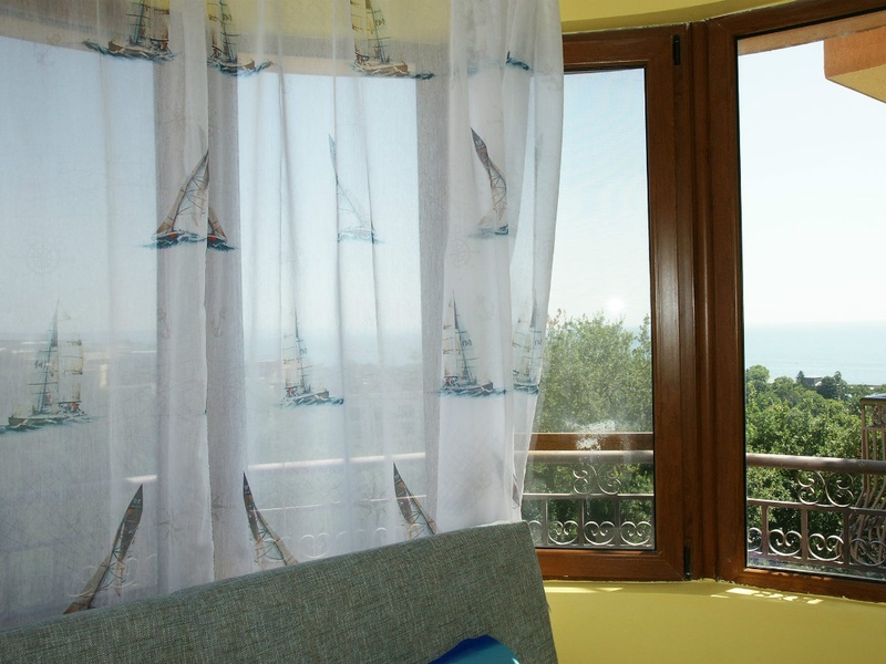 Апартаменты на 3 этаже, добротно меблированы и оснащены всей необходимой техникой, с кондиционерами в каждой комнате, площадью 70 м2, со спальной и ванной комнатами, гостиной с открытой кухней, террасой с красивым панорамным видом на море и парк.