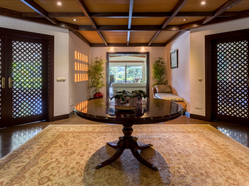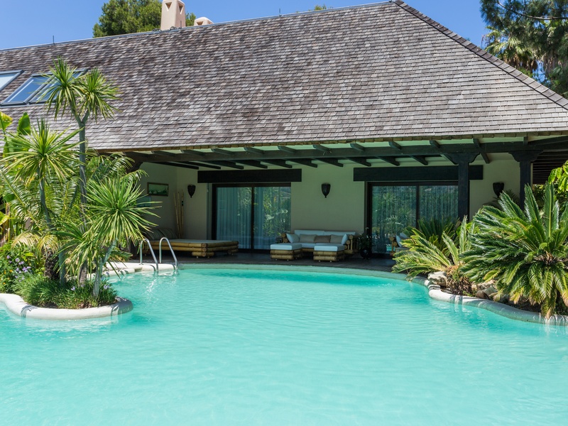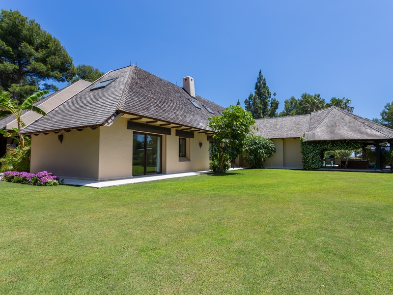 Stylish villa with wooden roof of Canada, located in Golf Rio Real. Plot in Gated Community with communal areas and gardens. Entrance hall, 6 bedrooms, 6 bathrooms, living room, dining room, several rest rooms, room and dressing room to the master bedroom, kitchen, 3 porches, all large, porch table tennis, lounge with pool table (snooker), garage for more than 5 cars. Oversized pool with colored lighting. Additional apartment with living room, bathroom, kitchen and bedroom with separate entrance.