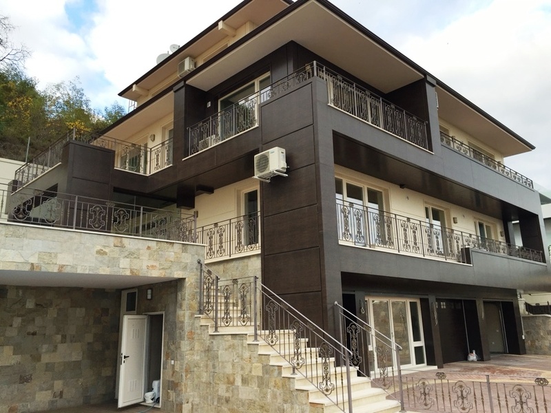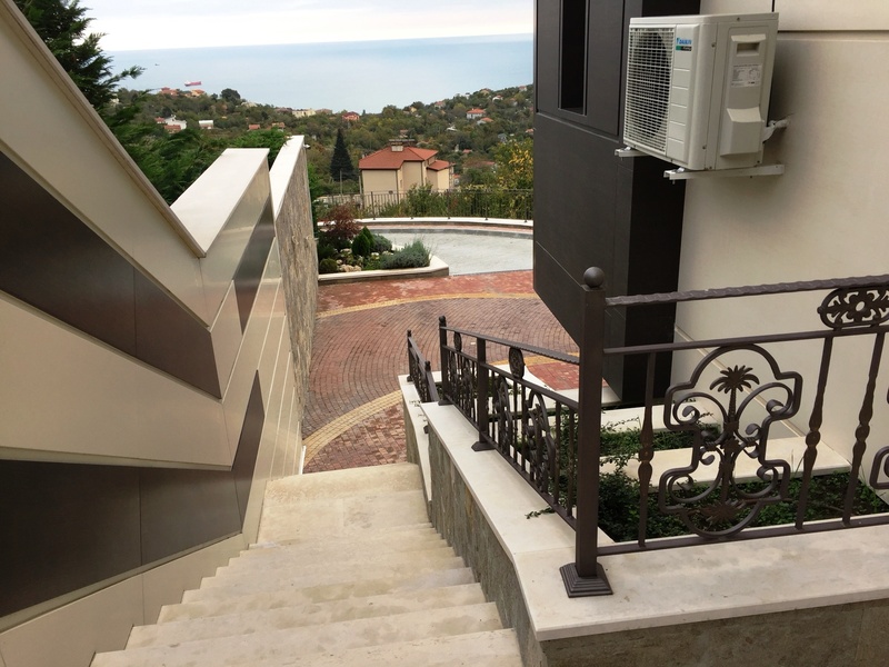 All rooms in the house are with terraces and overlooking the sea. Railings on the terraces are made of wrought iron. In the house is equipped with high-quality REHAU Geneo windows. Interior doors are made of solid wood and MDF. Steps stairwell in the building are with marble, wooden railing.