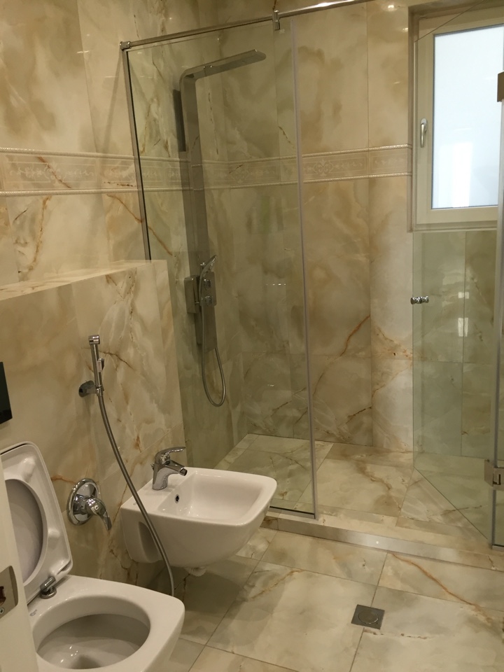 On the second floor: master bedroom (floor covering - wooden parquet) with private bathroom with toilet (with floor heating), two further bedrooms (floor covering - wooden parquet), study (floor - marble, floor heating), separate bathroom with toilet (with floor heating), ironing room. The floor is partially furnished.